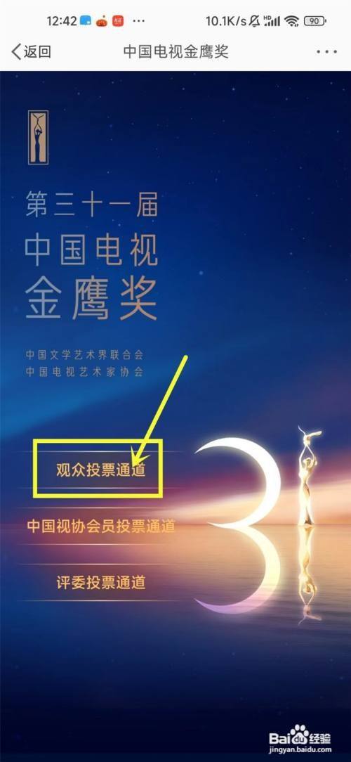 打开到金鹰投票通道,选择“不雅众投票通道”按钮。