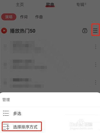 第四步、点击三横线图标,点击选择排序方式。
