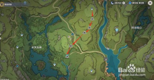 掣电树位置:到无郁丛林的神像,在这里可以看到雷史莱姆和雷法。往里走就可以看到掣电树了。传送点在树后面。(打boss建议带火冰脚色)