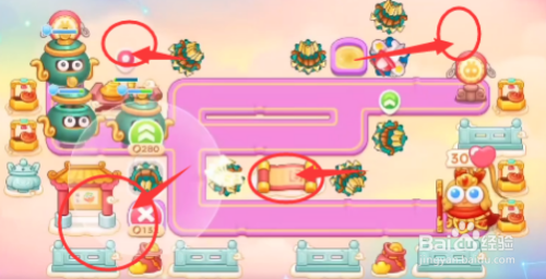 详细炮塔如图所示,多重箭加烟花,每个区域放置一个毒针减速,直线位置飞机辅助。
