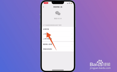 切换页面到微信修复东西,在页面中点击妨碍修复。
