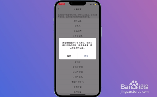 待页面弹出一个小窗口,点击确认即可恢复微信谈天记载。
