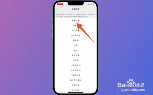 进入妨碍修复页面后,点击谈天记载这一选项。