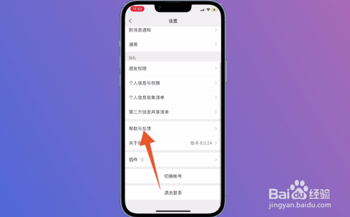进入到设置页面里,找到并点击页面最下方的帮忙与反馈。