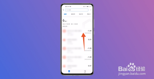 跳转到账单界面后,选中需要删除的单条账单记载长按。