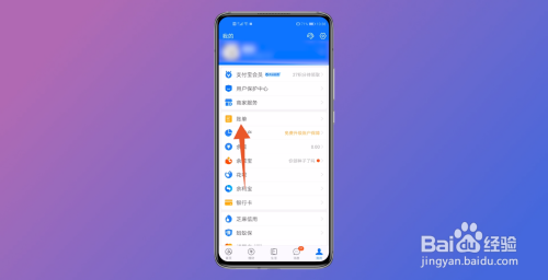 在跳转到我的选项界面后,找到账单按钮点击进入。