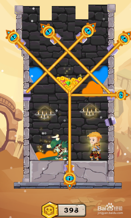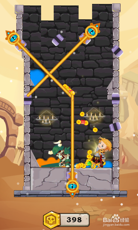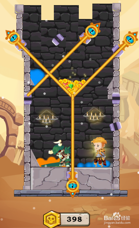 这一关是赢取宝藏,红色熔岩在宝藏的外侧,仇敌站在少年左侧,环境如图。