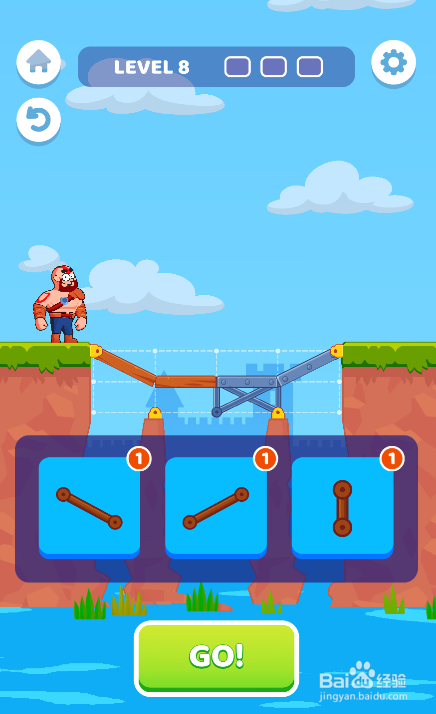 点击按下底部的绿色GO!按钮,勇士顺遂过桥,如图。这样就过关了。