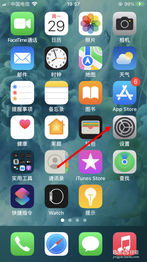 首先在苹果手机本家儿屏幕上点击【设置】。