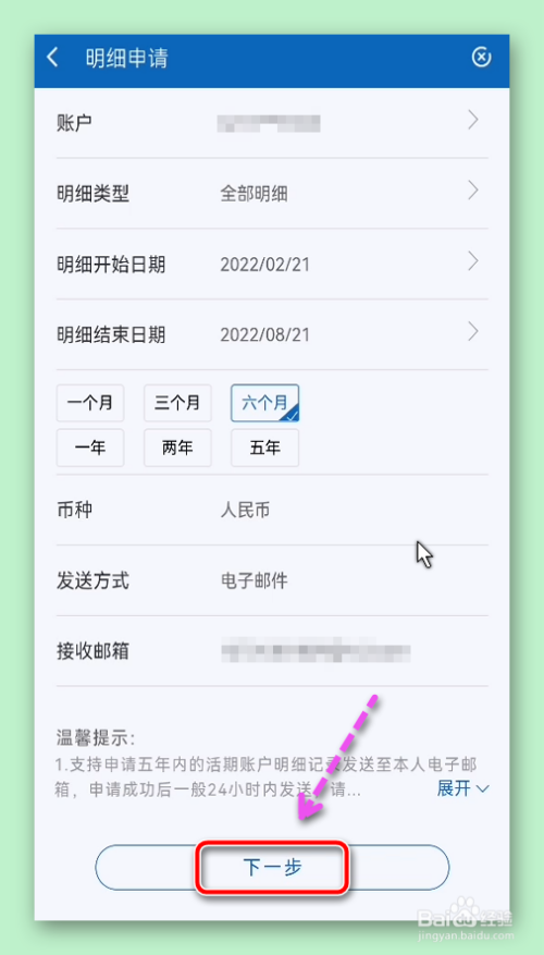 点击【活期账户生意业务明细申请】。