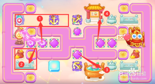开始的时辰下面放置一个船锚,在兔子没有出来之前打桌子,有金币之后在上面在放置一个船锚。