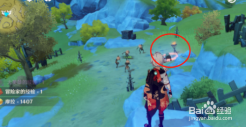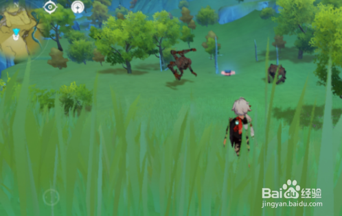 3、拿到第六个宝箱后一直标的目的前走就可以瞥见丘丘人营地,这里是第七个平凡宝箱。