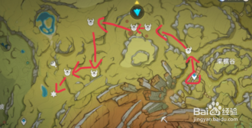 1、首先是宝箱的线路图,在采樵谷到喷鼻醉坡之间。