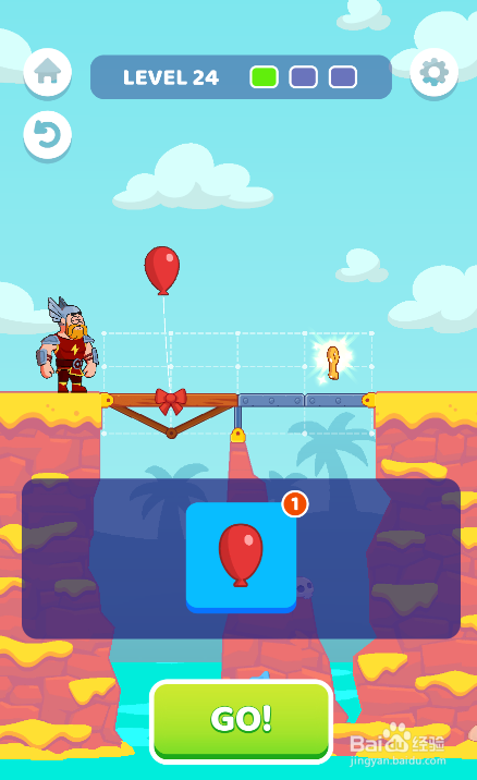 这一关桥梁上面的木板需要移动位置,别的需要下侧的斜标的目的毗连件和气球来修复加固桥梁,环境如图。