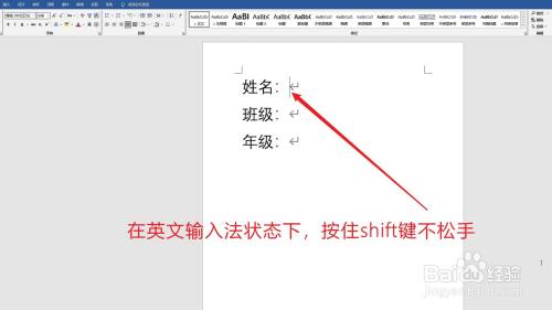 将输入法调解为英文状况,找到键盘上的shift键,一直按住它。