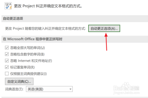 在右侧面板中,点击“主动更正选项”按钮。