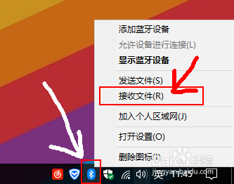 在电脑上的蓝牙图标右键点击,选择【吸收文件】。
