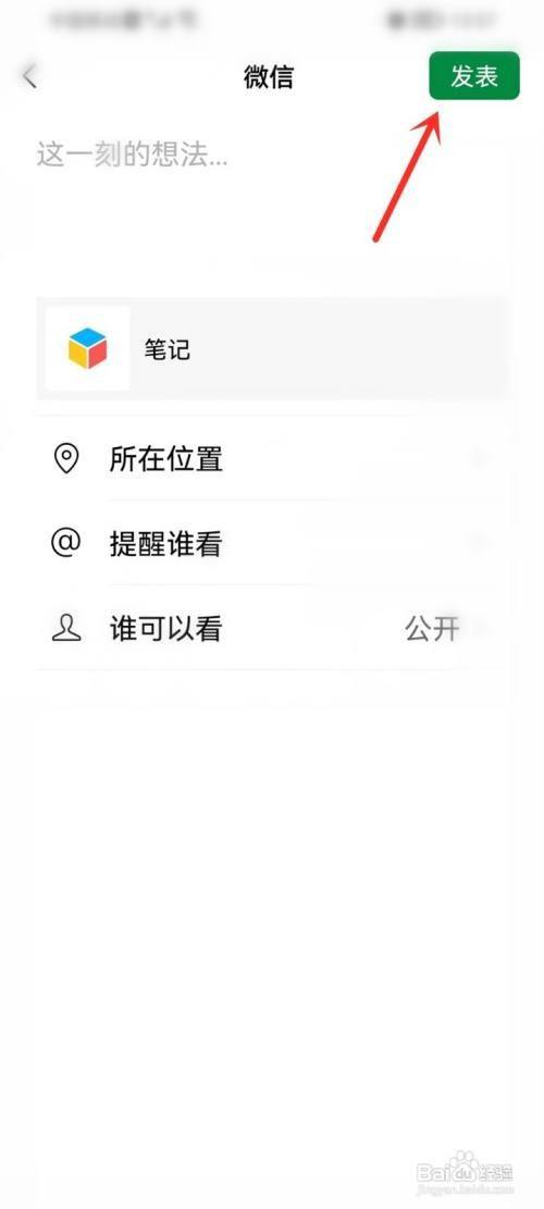 点击右上角”发表“,即可将保藏的视频发到朋友圈。