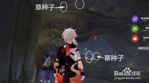 我们传送到桓那兰那这里,然后我们往舆图的西海说神聊偏向看,召唤草种子,用重击或者对准射击图中指引的两个死域。