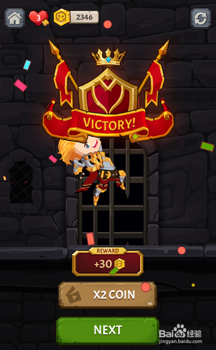 少年景功拿到宝箱,弹出VICTORY的通关动画,如图。这样就过关了。