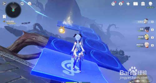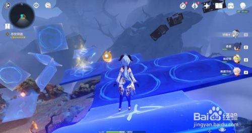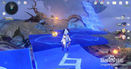 进入秘境后,前方有个鼓,敲击一下,顺着垫脚石上去。