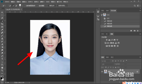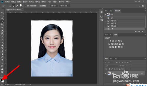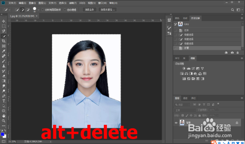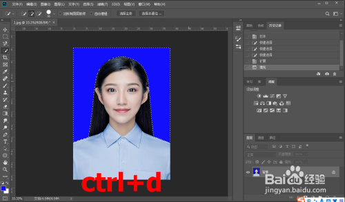 按下快捷键【ctrl+d】取消选区,即可完当作证件配景酿成蓝色。