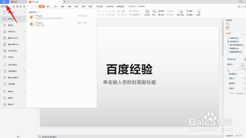 打开ppt,PPT的页面中点击左上角的文件选项。