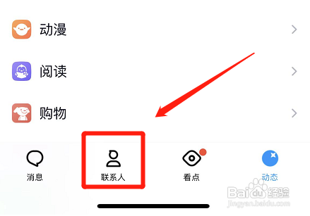 激活QQ通信录权限后,进入手机QQ“接洽人”页面。