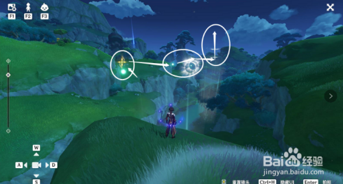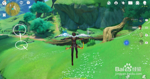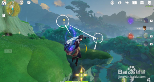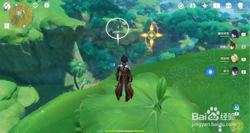 6、利用四叶印回到遮阳叶上,往小舆图左上方位置飞,利用四叶印得到能量。