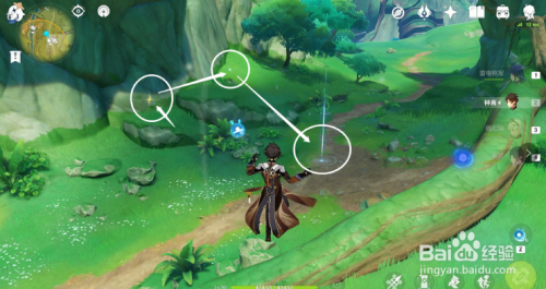 23、昂首,往小舆图下方位置看,利用四叶印按图中路线网络能量。