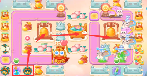 详细炮塔如下,烟花加星星防空炮塔,两侧多重箭,每个区域一个泡泡塔减速。