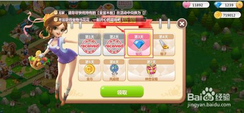 工具/原料方正T249windows10QQ空间农场2019方法/步骤1打开QQ空间农场,登录到本身的页面;2用鼠标左键点击页面右上角的活动;3在打开的一条菜单中找到并点击七日签到;4进入七日签到页面中;5在签达到到第三天时,我们就可以看到有50钻石可领;6点击下面绿色的领取按钮;7在得到奖励确认中点领取;8就乐成得到了50钻石。END
