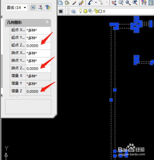 全选CAD内内容(CTRL+A)利用快捷键CTRL+1呈现上丹青面,找到几何图形,把Z轴所有的数字改为,存为CAD导入格局文件即可。
