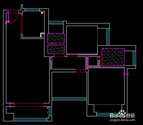 再删除门框线、梁线、飘扬窗线、空调管道、称重柱、烟道以及填充材质。