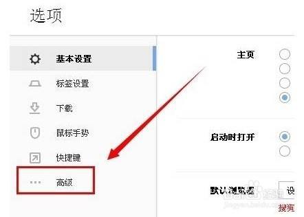 然后看到左边一些选项栏目,我们选择“高级”栏目: