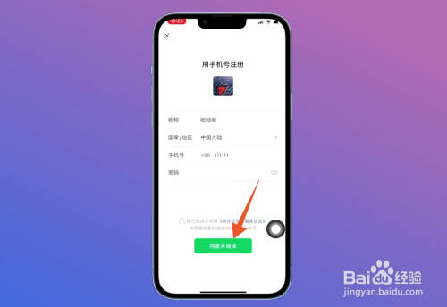 将全数资料填写完当作之后,点击页面下方位置的【赞成并继续】。