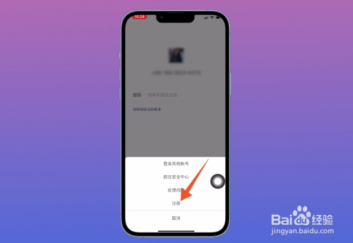 页面下方会弹出选项窗口,选择【注册】这个选项并点击。