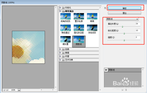 再次点击效果——画笔描边——暗影线。
