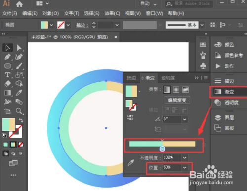 我们选择中心圆形,把两个颜色的渐变位置都调解为50%。