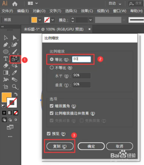 点击东西栏的【比例缩下班具】,勾选等比,调解为80,点击【复制】。