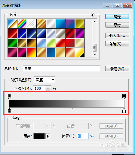 选择渐变东西,颜色设置为黑白色渐变;