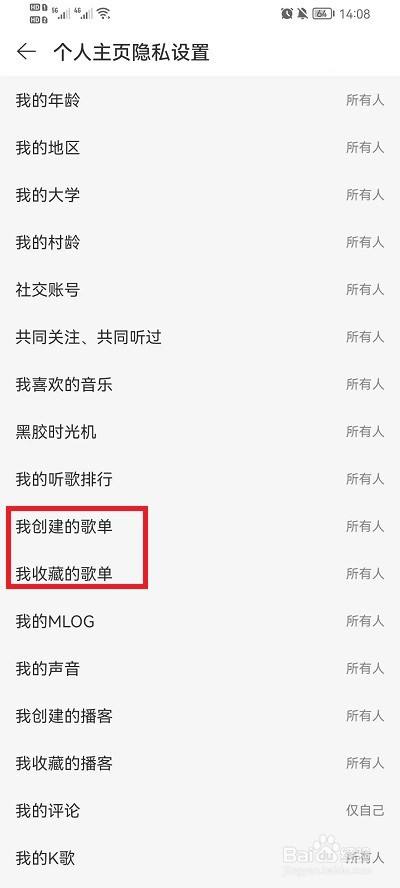 在隐私设置界面中,点击【我创建的歌单】【我保藏的歌单】