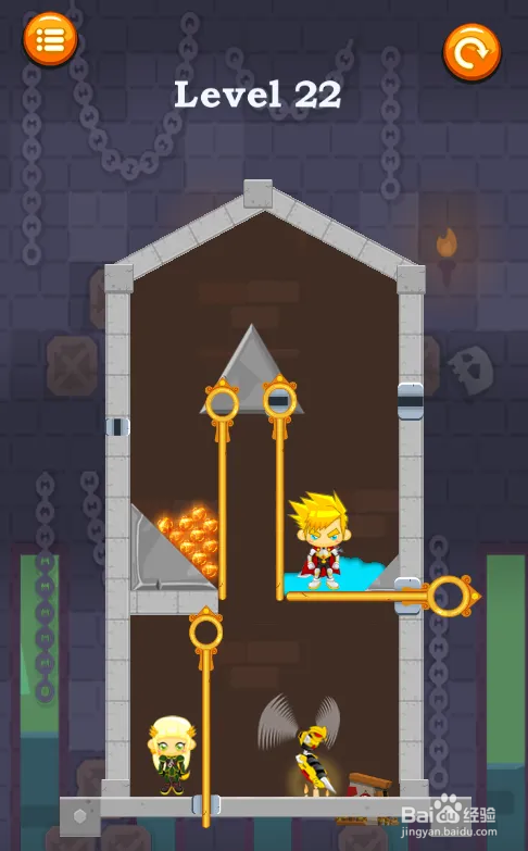徽6737032澳洲10平台这个关卡内里有五个插销,毒蜂在小女孩右侧,使命是营救小女孩,环境如图。