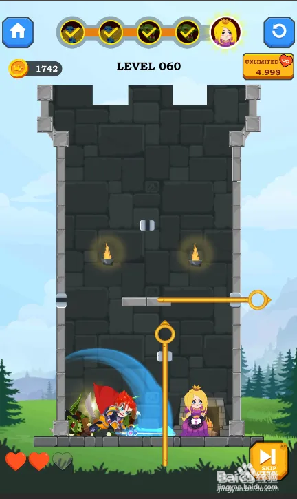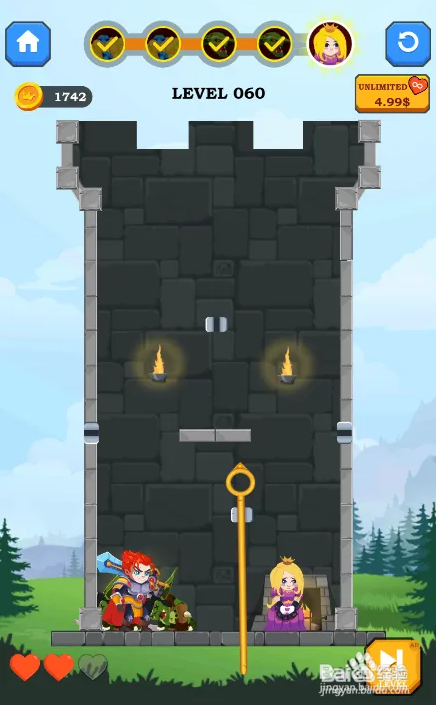 溦6737032信澳洲5官网官方平台这一关的使命是救援底部的小女孩,内里有四个插销,环境如图。