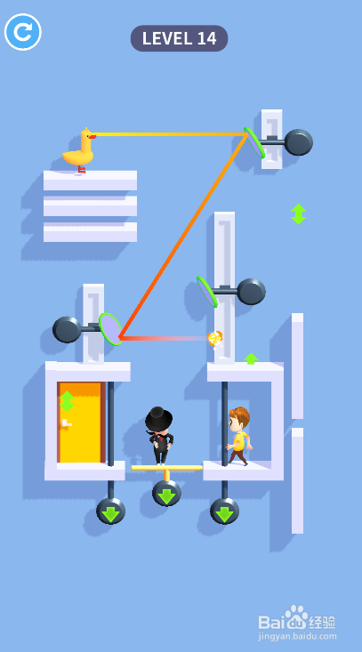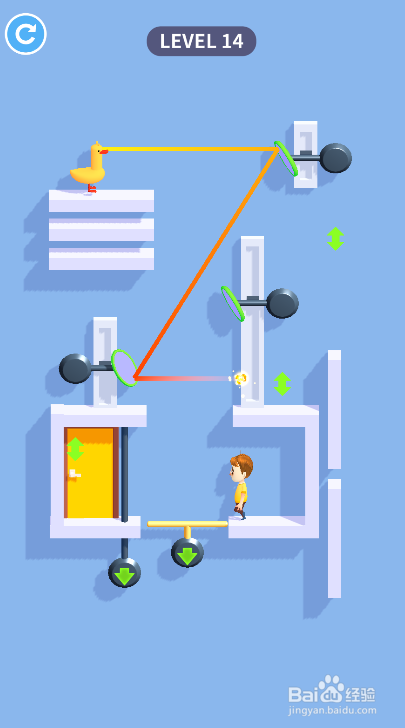 这一关内里有两个拉针与一个推拉杆,反光镜有三面,环境如图。