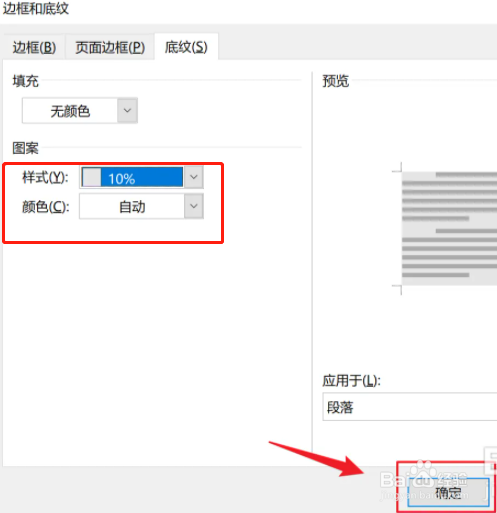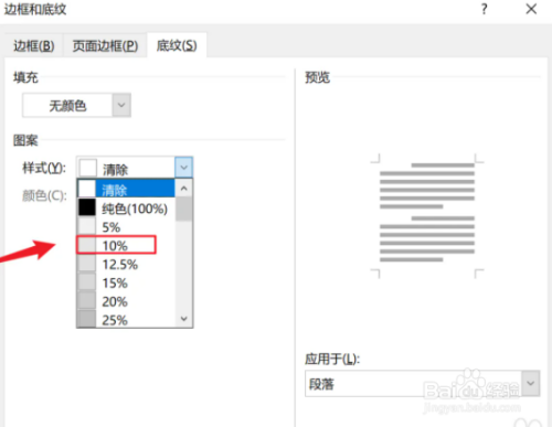 选择样式,在图案样式下拉选项中,点击【图案样式10%】。