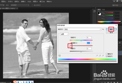 选择默认值,然后移动滑块调解黑白色相,点击确定。