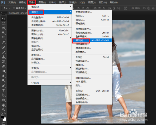 END打开图像,点击“图像>调解>色相/饱和度”。
