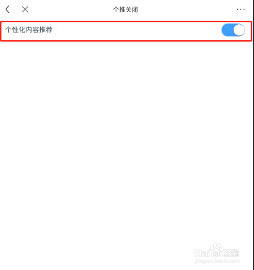 打开如下图界面,选择个性化内容保举选项,点击封闭后面的开关