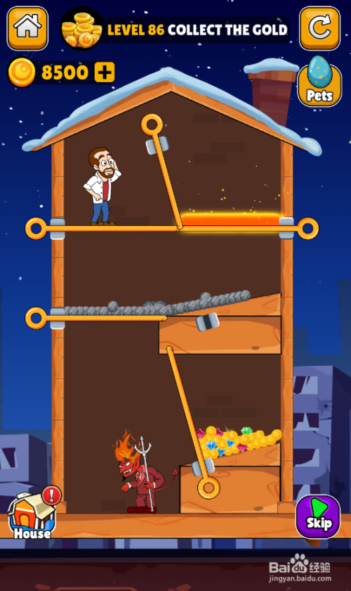 这一关史姑娘师长教师的使命是得到底部的宝藏,恶魔在宝藏左侧,环境如图。